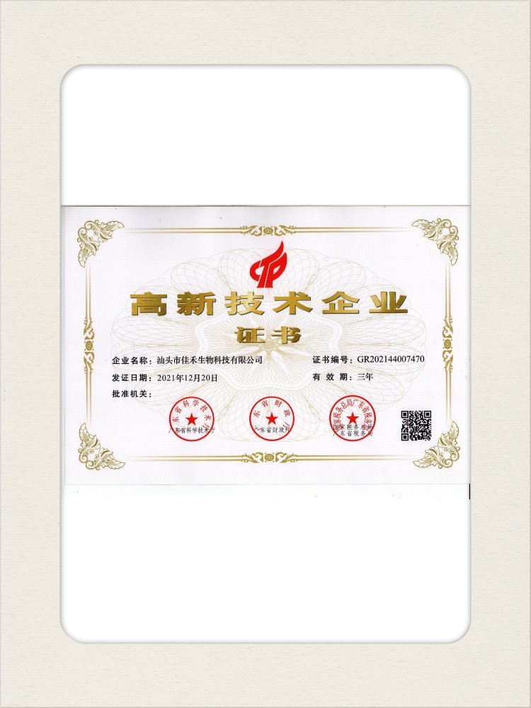 汕頭佳禾生物科技有限公司是一家致力于氨基酸及其衍生物研發(fā)、生產(chǎn)和銷售的國家高新技術(shù)企業(yè),先后通過了國家藥品GMP認(rèn)證,ISO9001質(zhì)量體系認(rèn)證、ISO14001環(huán)境管理體系認(rèn)證。目前,公司擁有“廣東省專精特新中小企業(yè)”、“廣東省氨基酸產(chǎn)品工程技術(shù)研究中心”、“汕頭市生物發(fā)酵工程技術(shù)研究開發(fā)中心”、“汕頭市知識(shí)產(chǎn)權(quán)優(yōu)勢企業(yè)”、“多項(xiàng)國家發(fā)明專利”、“廣東省守合同重信用企業(yè)”等多項(xiàng)資質(zhì)和榮譽(yù),旗下“佳禾牌”系列產(chǎn)品已成為原料藥行業(yè)知名品牌。 新泰市佳禾生物科技有限公司成立于2012年8月,注冊資金2億元,公司位于山東泰安新泰市新汶工業(yè)園區(qū),是國 家級高新技術(shù)企業(yè)、山東省“專精特新”企業(yè)、山東省制造業(yè)單項(xiàng)冠軍企業(yè)、泰安市科技型中小企業(yè)、泰安市農(nóng)業(yè)產(chǎn)業(yè)化龍頭企業(yè)、中國生物發(fā)酵產(chǎn)業(yè)協(xié)會(huì)理事單位。